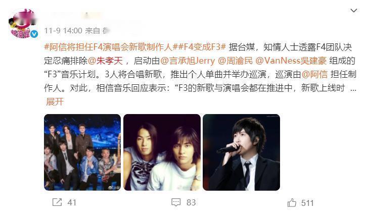 这两天最劲爆的娱乐新闻,不是金鸡红毯,也不是哪位演员撕剧组,而是F4正式变成了F3。